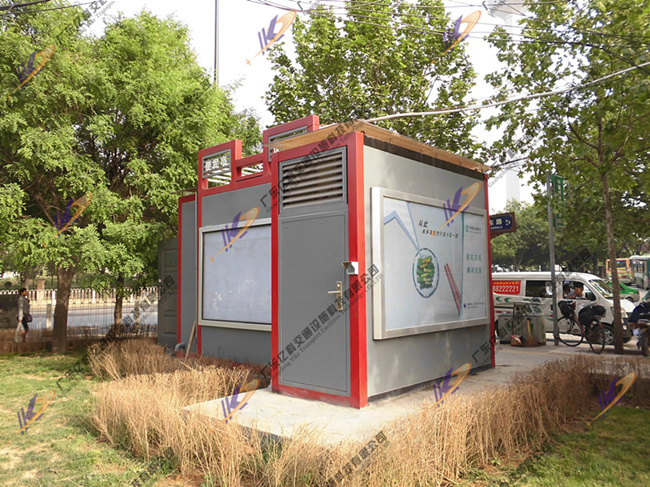 材料說(shuō)明:西安多功能智能信息便民服務(wù)亭材料上內外采用冷板;表面佛碳噴涂處理;墻內保溫水泥填充;亭子內部頂面鋁扣板吊頂;門(mén)為金屬甲級防盜門(mén);頂部裝飾玻璃6+6夾膠。